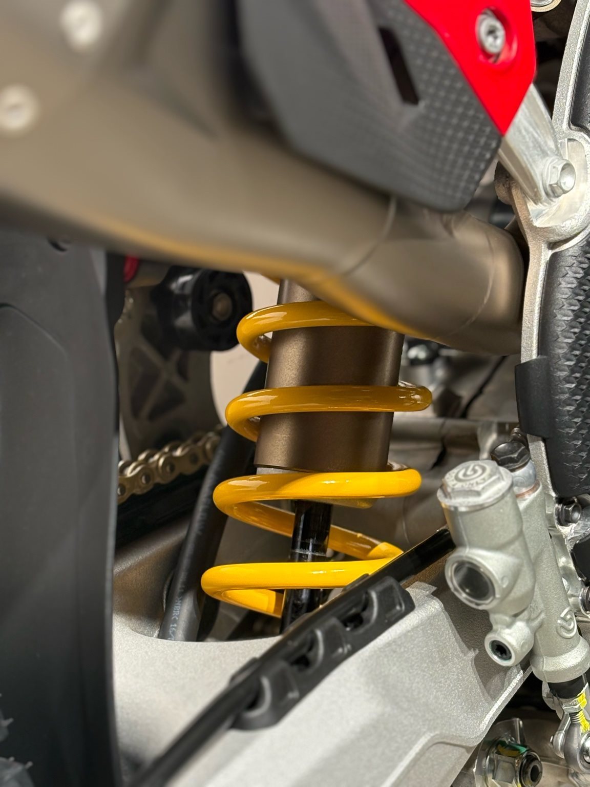 • Showa Fahrwerk mit Dark-Kashima-Beschichtung & TiO-Superfinish (Gabel & Federbein)